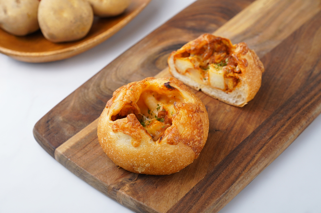 - 完熟トマトを使用した濃厚なボロネーゼソースとなめらかなチーズ、ほっくりとしたジャガイモを包み、焼きあげました。